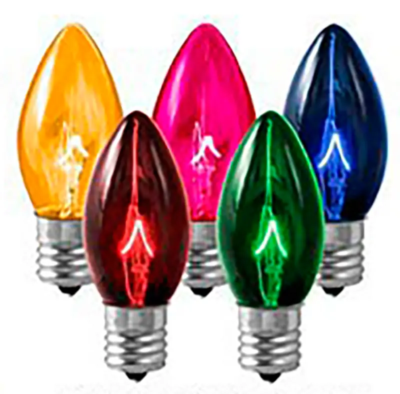 C9 INCANDESCENT BULBS Colors Clear - Blue - Red - Green - Multi Description 7 Watt / 130 Volt3000 Hour / Double DippedPack: 1000 Related Product G50 SMD BULBView Product C7 FACETED SMD BULBSView Product C7 INCANDESCENT BULBSView Product C7/C9 Color Changing RGB BulbView Product